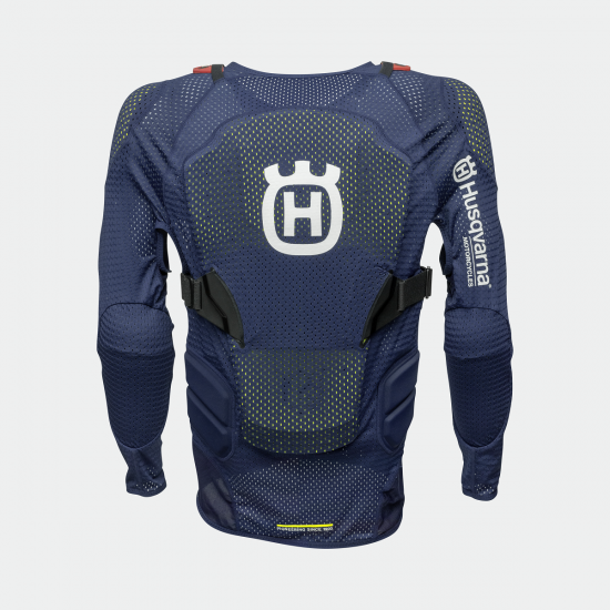 伸縮性のあるチェストストラップでプロテクターをよりしっかりと固定